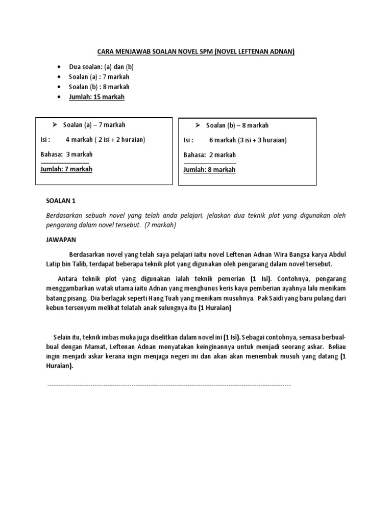 Contoh Soalan Novel Leftenan Adnan Tingkatan 4 Yy Me00